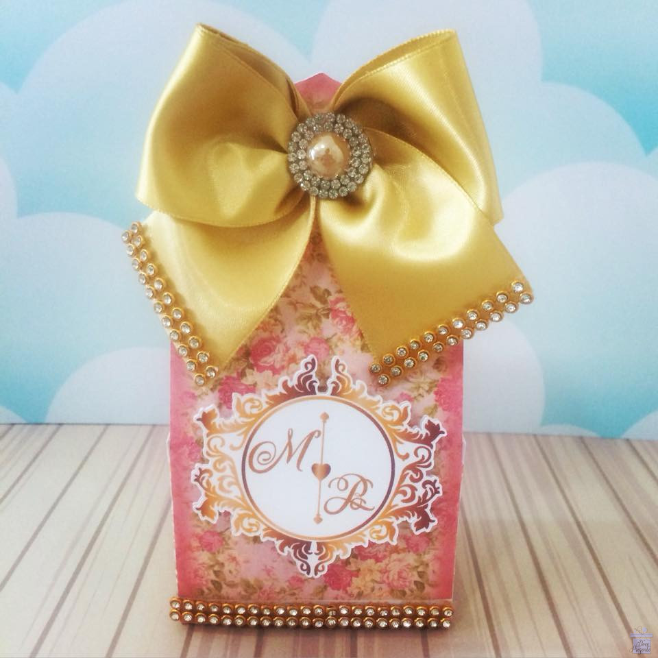 Caixa quadrada 3D lembrancinha porta bem casado amarelo